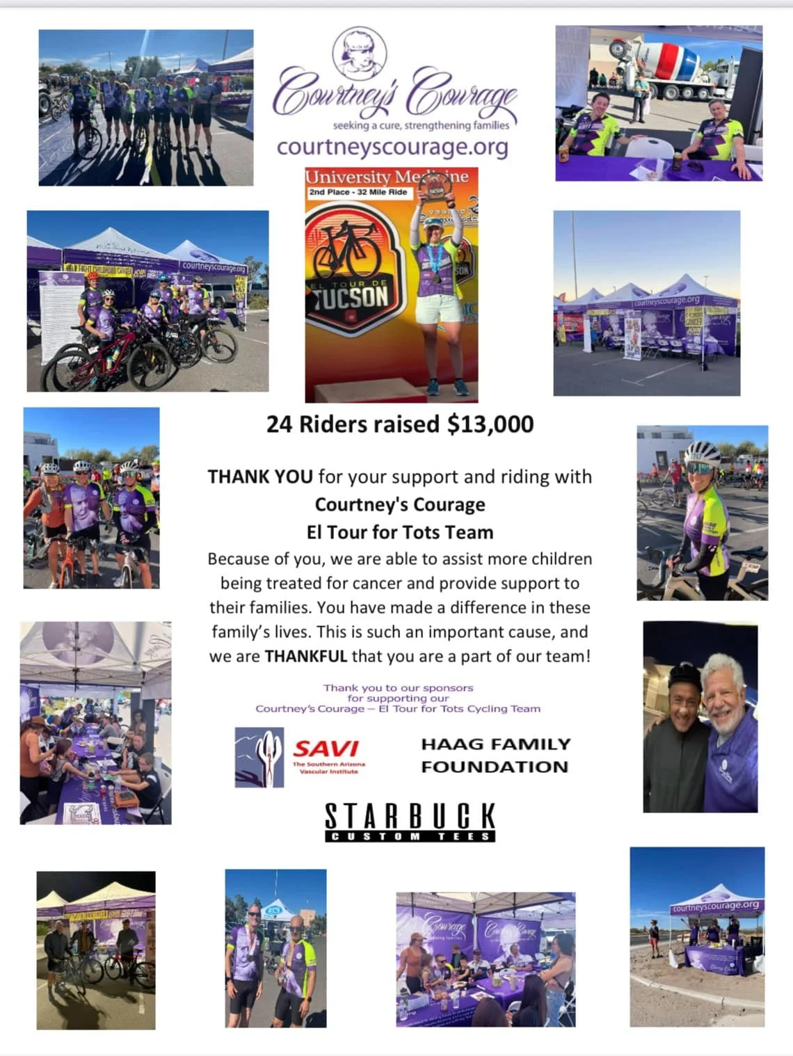 Thank you to all our 2024 sponsors and riders for your support with our Courtney’s Courage El Tour for Tots Team!