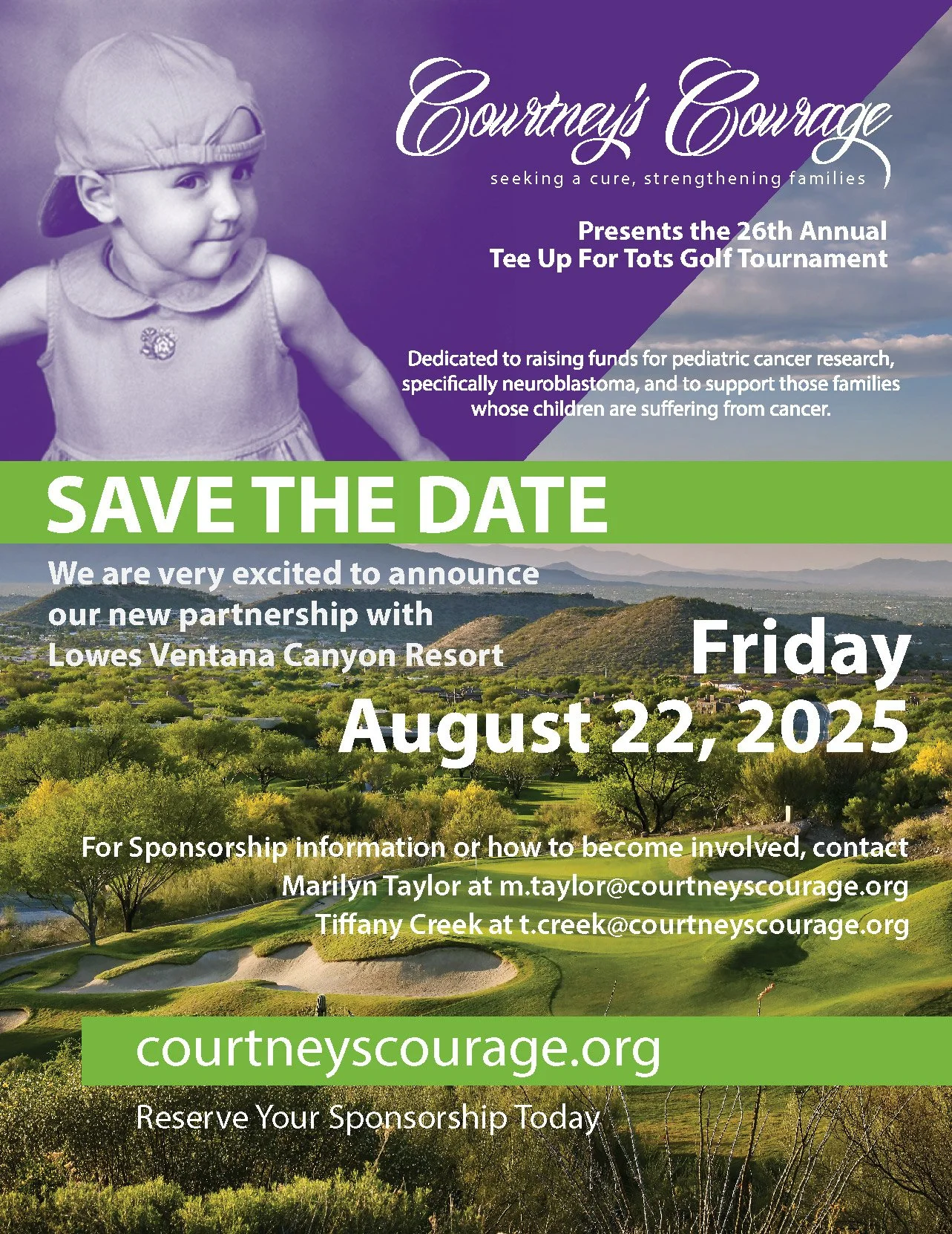 The 26th Annual Tee Up for Tots Golf Tournament will be held on August 22, 2025 at Ventana Canyon Club and Resort.